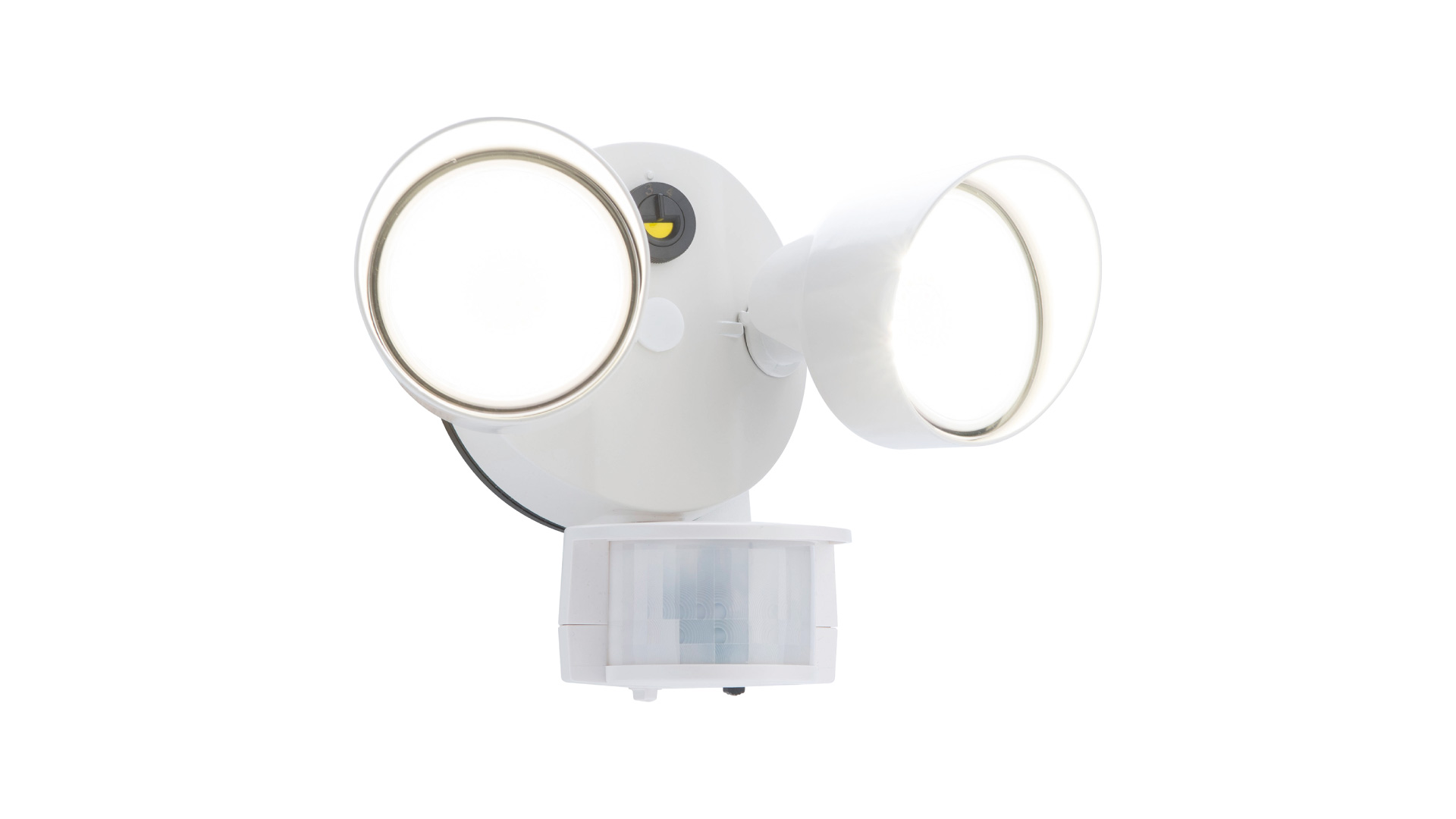 La luz de seguridad LED ovalada de doble cabezal de alto rendimiento con sensor de movimiento ofrece seguridad e iluminación general para aplicaciones residenciales en exteriores.